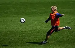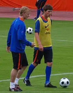 Kuyt scored three goals in the 2010 World Cup qualifiers. During a friendly against England, he opened the scoring less than ten minutes after kick-off, pouncing on Rio Ferdinand's poor back pass. Kuyt was included in the Netherlands' preliminary squad for the 2010 World Cup in South Africa.[44] On 27 May 2010, the Netherlands manager Bert van Marwijk announced that the player would be part of the final squad of 23 participating in the competition.[45] At the finals, Kuyt scored the Netherlands' second goal in the 85th minute of their 2–0 win over Denmark in its opening group match, slotting in the rebound after Eljero Elia's shot hit the post. In the quarter-final match on 2 July against Brazil, Kuyt flicked a corner on to Wesley Sneijder, who headed the ball into the net to give the Dutch a 2–1 win. Kuyt also assisted the goal scored by Arjen Robben against Uruguay in the semi-finals. Kuyt started all seven matches for the national team, which finished as runners-up to Spain, and finished the tournament with one goal and three assists.[46]