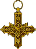 The first style of the Distinguished Service Cross was designed by Captain Aymar E. Embury II, Engineers Officer Reserve Corps, and World War I artist Lieutenant J. Andre Smith.[6][7] The first medals were struck by the United States Mint from a sculpture by Gaetano Cecere, who went on to design the Soldier's Medal.[7] It was decided that minor changes were needed to make the medal more attractive.[6] In light of the urgency in supplying the decorations to General Pershing, the first one hundred medals were struck from the original design. They were sent on the understanding that replacements in the second design (also numbered from 1 to 100) would be provided once they were available.[6] Embury made the modifications with the plaster model for the second (and current) version made by John R. Sinnock, who also sculpted various other medals, including the Purple Heart.[7]