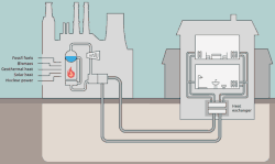 Animated image showing how district heating works