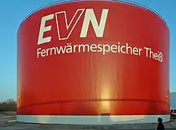 District heating accumulation tower from Theiss near Krems an der Donau in Lower Austria with a thermal capacity of 2 gigawatt-hours (7.2 TJ)