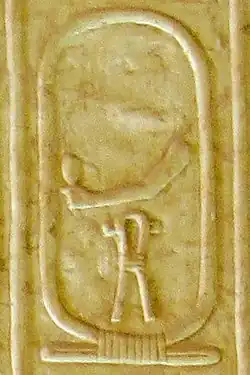 Cartouche name ...djeser-sah in the king list of Abydos. Note the upper part of the cartouche, which shows signs of erased hieroglyphs.