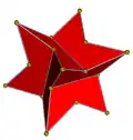 The regular dodecahedron has three stellations, all of which are regular star dodecahedra. They form three of the four Kepler–Poinsot polyhedra. They are the small stellated dodecahedron, the great dodecahedron, and the great stellated dodecahedron.[7] The small stellated dodecahedron and great dodecahedron are dual to each other; the great stellated dodecahedron is dual to the great icosahedron. All of these regular star dodecahedra have regular pentagonal or pentagrammic faces. The convex regular dodecahedron and great stellated dodecahedron are different realisations of the same abstract regular polyhedron; the small stellated dodecahedron and great dodecahedron are different realisations of another abstract regular polyhedron.