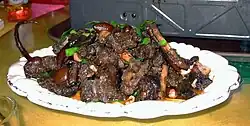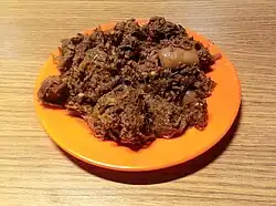Dog meat, also known as fragrant meat or simply fragrant,[4][5] is the meat derived from dogs. Historically, human consumption of dog meat has been recorded in many parts of the world.[6]