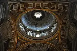 Because domes are concave from below, they can reflect sound and create echoes.[51] A dome may have a "whispering gallery" at its base that at certain places transmits distinct sound to other distant places in the gallery.[15] The half-domes over the apses of Byzantine churches helped to project the chants of the clergy.[52] Although this can complement music, it may make speech less intelligible, leading Francesco Giorgi in 1535 to recommend vaulted ceilings for the choir areas of a church, but a flat ceiling filled with as many coffers as possible for where preaching would occur.[53] Disagreeing with his contemporaries, Vincenzo Scamozzi asserted in 1615 that dome vaulting assists acoustics, provided that the walls and other surfaces are "broken up as much as possible by cornices (preferably two superimposed orders), openings, cofferings, cavities, reliefs, and pilasters."[54]