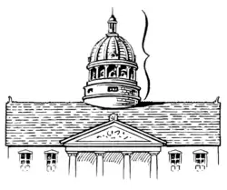 The word "cupola" is another word for "dome", and is usually used for a small dome upon a roof or turret.[10] "Cupola" has also been used to describe the inner side of a dome.[11][ab] The top of a dome is the "crown". The inner side of a dome is called the "intrados" and the outer side is called the "extrados".[12] As with arches, the "springing" of a dome is the base level from which the dome rises and the "haunch" is the part that lies roughly halfway between the base and the top.[12][13] Domes can be supported by an elliptical or circular wall called a "drum". If this structure extends to ground level, the round building may be called a "rotunda".[14] Drums are also called "tholobates" and may or may not contain windows. A "tambour" or "lantern" is the equivalent structure over a dome's oculus, supporting a cupola.[15]