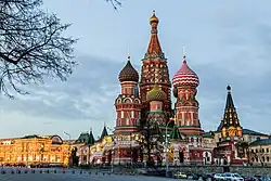 In Russian architecture, bulbous and onion domes became prominent from the late 15th century onward, notably in landmarks such as Saint Basil's Cathedral in Moscow. Many historians attribute their spread to Central Asian and Islamic influences transmitted through the Tatar-Mongol cultural sphere, rather than independent development. Earlier domes in Kievan Rus' were typically shallower and lacked the pronounced curvature of later examples. Onion domes became more widespread during and after Tatar rule, as architectural ties with the Islamic world deepened.[93]