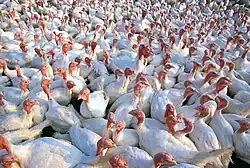 22. ^ Martrenchar, A.; Huonnic, D.; Cotte, J. P.; Boilletot, E. & Morisse, J.P. (1999). "Influence of stocking density on behavioural, health and productivity traits of turkeys in large flocks". British Poultry Science. 40 (3): 323–331. doi:10.1080/00071669987403. PMID 10475628.