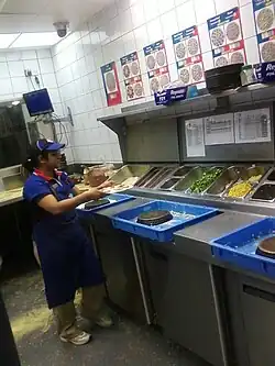 From its founding until the early 1990s, the menu at Domino's Pizza was kept simple relative to other fast food restaurants, to ensure efficiency of delivery.[48] Historically, Domino's menu consisted solely of one style of pizza crust in two sizes (12-inch and 16-inch), eleven toppings, and Coca-Cola as the only soft drink option.[49]