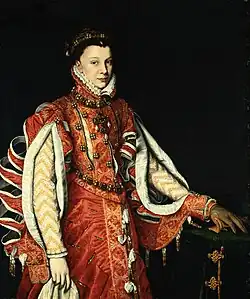 The historical Elizabeth of Valois, by Juan Pantoja de la Cruz, 1565