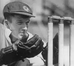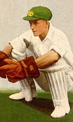 Donald Tallon (17 February 1916 – 7 September 1984) was an Australian cricketer who played 21 Test matches as a wicket-keeper between 1946 and 1953. He was widely regarded by his contemporaries as Australia's finest ever wicket-keeper and one of the best in Test history,[1] with an understated style, an ability to anticipate the flight, length and spin of the ball and an efficient stumping technique. Tallon toured England as part of Don Bradman's Invincibles of 1948 and was recognised as one of the Wisden Cricketers of the Year in 1949 for his performances during that season. During his Test career, Tallon made 58 dismissals comprising 50 catches and 8 stumpings.