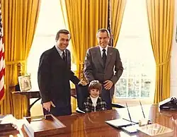 When Rumsfeld left OEO in December 1970, Nixon named him Counselor to the President, a general advisory position; in this role, he retained Cabinet status.[11]: 75 He was given an office in the West Wing in 1969 and regularly interacted with the Nixon administration hierarchy. He was named director of the Economic Stabilization Program in 1970 as well, and later headed up the Cost of Living Council. In March 1971 Nixon was recorded saying about Rumsfeld "at least Rummy is tough enough" and "He's a ruthless little bastard. You can be sure of that."[46][47][48][49][50]