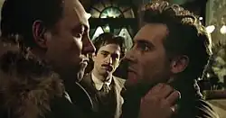 Sutherland found himself as a leading man throughout the 1970s in films such as the Venice-based psychological horror film Don't Look Now (1973), co-starring Julie Christie, a role which saw him nominated for the BAFTA Award for Best Actor.[38] He took a leading role in the war film The Eagle Has Landed (1976) acting opposite Michael Caine and Robert Duvall[39] That same year he starred in Federico Fellini's film Federico Fellini's Casanova (1976) playing Giacomo Casanova.[40] A year later, he had parts as a clumsy waiter in the comedy The Kentucky Fried Movie and as a contract killer in the thriller The Disappearance.[41][42]