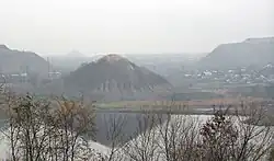 The city stretches 28 km (17 mi) from north to south and 55 km (34 mi) from east to west. There are 2 nearby reservoirs: Nyzhnekalmius (60 ha), and the Donetsk Sea (206 ha). 5 rivers flow through the city, including the Kalmius, Asmolivka (13 km), Cherepashkyna (23 km), Skomoroshka and Bakhmutka. The city also contains a total of 125 spoil tips.[44]