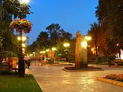 In 1924, under Soviet rule, the city's name was changed to Stalin. In that year, the city's population totaled 63,708, and in the next year, 80,085. In 1929–31 the city's name was changed to Stalino.[17] The city did not have a drinking water system until 1931, when a 55.3 km (34.4 mi) system was laid underground. In July 1933, the city became the administrative center of the Donetsk Oblast of the Ukrainian SSR.[18] In 1933, the first 12 km (7 mi) sewer system was installed, and the use of gas began the next year. Some sources state that the city was briefly called Trotsk—after Leon Trotsky—for a few months in late 1923.