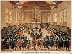 The gathering is regarded as the first important step towards the free and independent Dutch Republic.[12] Other important gatherings such as the Union of Brussels (1577) and the Union of Utrecht (1579) paved the way for official independence of the Dutch Republic, declared in the Act of Abjuration in 1581.