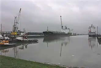 During the French period (1795–1813) Dordrecht continued to have a decent sea harbor and, for ocean-going ships, it was easier to reach than Rotterdam harbor. This changed in 1829, when the Voorne Canal was opened. Meanwhile, profits from the trade with the Dutch East Indies probably obscured the fact that Dordrecht was losing the maritime competition with Rotterdam. The end of Dordrecht as a first rate sea harbor came about when the Nieuwe Waterweg became fully usable in 1883.[18] Compared to Dordrecht, Rotterdam sent about four times as much cargo up the Rhine to Germany in 1875. In 1895 this was 30 times as much and in 1910 about 200 times. In absolute numbers cargo from Dordrecht declined by more than 50%.[18]