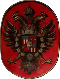 The two-headed eagle appears, often as a supporter, on the modern and historical arms and flags of Austria-Hungary, the Kingdom of Yugoslavia, Austria (1934–1938), Albania, Armenia, Montenegro, Russia and Serbia. It was also used as a charge on the Greek coat of arms for a brief period in 1925–1926.[26] It is also used in the municipal arms of a number of cities in Germany, Netherlands and Serbia, the arms and flag of the city and province of Toledo, Spain, the arms of the town of Velletri, Italy, and the arms and flag of the city of Rijeka, Croatia.