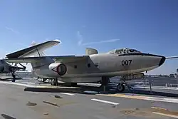 Douglas EA-3B on display with wings folded aboard museum ship USS Yorktown at Patriots Point Park in Charleston, South Carolina