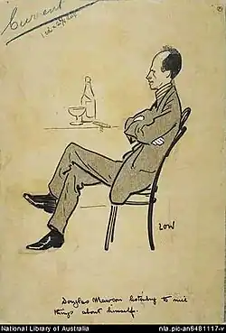 He entered the University of Sydney in March 1899,[12] aged just 16,[13] the same year as his brother.[11] Douglas enrolled in a degree in mining engineering. His studies covered a number of subjects over the three-year degree, obtaining first class honours in geology and mineralogy in his second year, and winning a prize in petrology.[14] He graduated with a Bachelor of Engineering degree in mining and metallurgy on 19 April 1902[12] with second-class honours.[15] Even before graduating, he was appointed as a junior demonstrator in chemistry, with the approval of chemistry professor Archibald Liversidge, and with geologist Edgeworth David as his referee.[12] Both men became major influences in his geological career.[3]