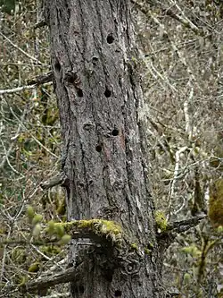 Douglas-fir seeds are an extremely important food source for small mammals such as moles, shrews, and chipmunks, which consume an estimated 65% of each annual seed crop. The Douglas squirrel harvests and hoards great quantities of Douglas-fir cones, and also consumes mature pollen cones, the inner bark, terminal shoots, and developing young needles.[14]