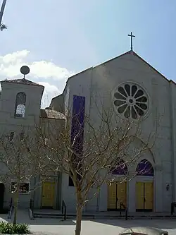 Mission San Gabriel Arcángel was initially founded on September 8, 1771, near settlements of the Tongva people. It was located in the Whittier Narrows on a bluff overlooking the Rio Hondo, near the modern intersection of San Gabriel Blvd and Lincoln Avenue.[6] After five years, flooding forced the relocation of the mission to its present site in San Gabriel.[7]