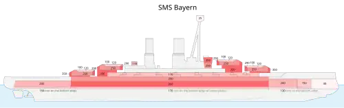 Much of the displacement of a dreadnought was taken up by the steel plating of the armour. Designers spent much time and effort to provide the best possible protection for their ships against the various weapons with which they would be faced. Only so much weight could be devoted to protection, without compromising speed, firepower or seakeeping.[63]