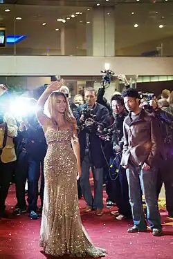 The most crucial casting decision involved the role of Effie White, the emotional center of the story.[21] The filmmakers insisted on casting a relative unknown in the role, paralleling the casting of then-21-year-old Jennifer Holliday in that role for the original Broadway production.[21] A total of 783 singing actresses auditioned for the role of Effie White, among them American Idol alumnae Fantasia Barrino and Jennifer Hudson, former Disney star Raven-Symoné, and Broadway stars Capathia Jenkins and Patina Miller. Community actress Yvette Nicole Brown was also in the running for the role but was eventually cast as the legal secretary to Foxx's character.[27] Though Barrino emerged as an early frontrunner for the part,[28] Hudson was eventually selected to play Effie, leading Barrino to telephone Hudson and jokingly complain that Hudson "stole [Barrino's] part."[29][30][31]