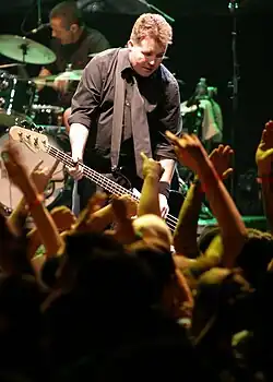 Dropkick Murphys are an Irish American Celtic punk band formed in Quincy, Massachusetts, in 1996.[4] The lineup consists of co-lead vocalist Ken Casey, drummer Matt Kelly, co-lead vocalist Al Barr (on hiatus since 2022), rhythm and lead guitarist James Lynch, lead guitarist and multi-instrumentalist Tim Brennan, multi-instrumentalist and rhythm guitarist Jeff DaRosa, and bassist Kevin Rheault. Casey has been the band's only constant member since the band formed. The band is known for their loud, energetic live shows.