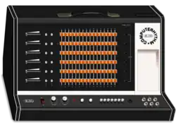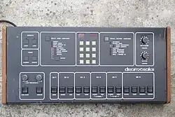 In 1972, Eko released the ComputeRhythm, which was one of the first programmable drum machines.[17] It had a 6-row push-button matrix that allowed the user to enter a pattern manually. The user could also push punch cards with pre-programmed rhythms through a reader slot on the unit.[18]