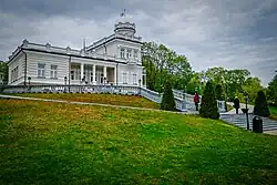 After World War I the city became part of Poland. Its popularity was increased by the patronage of Józef Piłsudski, who spent most of his summer holidays there and promoted the development of the area. Soon most of the resort was bought up by the state-owned Bank Gospodarstwa Krajowego and the construction of luxurious villas and pensions started. According to the first Polish census of 1921, Druskininkai was inhabited by 989 people, among whom 646 were Roman Catholic, 46 Orthodox, 3 Evangelical and 294 Jewish. At the same time, 700 inhabitants declared Polish nationality, 8 Belarusian, 242 Jewish, 20 Russian and only 19 Lithuanian. There were 308 residential buildings here.[5] In 1934 a railway link with the Parečča train station was opened and the city became more accessible to the general public. It was a gmina (municipal) center in Grodno powiat (county) of Białystok Voivodeship.