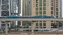 ![]() Dubai Metro train departing the Burj Khalifa / Dubai Mall station on the Red Line. | |