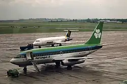The advent of wide-body aircraft posed opportunities and challenges for aviation. In 1971, Aer Lingus took delivery of two new Boeing 747 aircraft; the first one arrived in March and, shortly afterwards, performed a flyover above O'Connell Street in Dublin on Saint Patrick's Day; a third Boeing 747 was delivered later that decade. To cope with this, a new £10 million passenger terminal capable of handling six million passengers per year, which became known as Terminal 1, was opened in June 1972.[11] The growth which was anticipated at Dublin's airport (and provided for through heavy investment by the airport and Aer Lingus) during the 1970s did not materialise immediately.