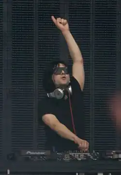 Commenting on the success of American producers such as Skrillex, Skream stated: "I think it hurts a lot of people over here because it's a UK sound, but it's been someone with influences outside the original sound that has made it a lot bigger. The bad side of that is that a lot of people will just say 'dubstep equals Skrillex'. But in all honesty it genuinely doesn't bother me. I like the music he makes."[120] Other North American artists that were initially associated with the brostep sound were Canadian producers Datsik and Excision. Their production style has been described by Mixmag as "a viciously harsh, yet brilliantly produced sound that appealed more to Marilyn Manson and Nine Inch Nails fans than it did to lovers of UK garage".[121] The brostep sound also attracted the attention of metal bands. Nu metal band Korn's 2011 album The Path of Totality features several collaborations with electronic music producers, including Skrillex and Excision.[122] This style of dubstep is sometimes known as metalstep.