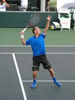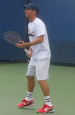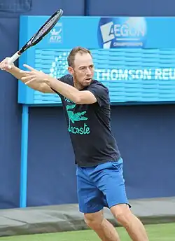 In May, he reached a new career-high world ranking of number 55. That month, he won his first round match at the 2009 French Open, his first French Open victory ever, against Jean-René Lisnard of Monaco.[22] In June at the Ordina Open, he defeated world number 59 Christophe Rochus, and at 's-Hertogenbosch in the Netherlands in a grass-court tuneup for Wimbledon, he beat world number 39 Igor Kunitsyn.[12] He again reached a career-high singles ranking, this time number 46.
