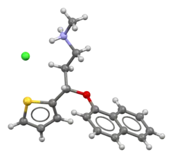 - ^ Bymaster FP, Beedle EE, Findlay J, Gallagher PT, Krushinski JH, Mitchell S, et al. (December 2003). "Duloxetine (Cymbalta), a dual inhibitor of serotonin and norepinephrine reuptake". Bioorganic & Medicinal Chemistry Letters. 13 (24): 4477–80. doi:10.1016/j.bmcl.2003.08.079. PMID 14643350.