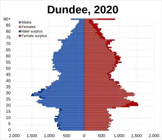 Dundee was declared a city in 1889, being the first Scottish place to have the title of city explicitly conferred on it rather than assuming it by customary usage.[67] In 1894, Dundee was made a county of itself, removing it from Angus.[69] The city's boundaries were enlarged on numerous occasions, notably in 1913 when it absorbed the neighbouring burgh of Broughty Ferry.[70][71][72]