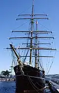 The rise of the textile industries brought with it an expansion of supporting industries, notably of the whaling, maritime and shipbuilding industries,[45] and extensive development of the waterfront area started in 1815 to cope with increased demand for port capacity.[46] At its height, 200 ships per year were built there, including Robert Falcon Scott's Antarctic research vessel, the RRS Discovery. This ship is now on display at Discovery Point in the city.[47] A significant whaling industry was also based in Dundee, largely existing to supply the jute mills with whale oil. Whaling ceased in 1912 and shipbuilding ceased in 1981.[48]