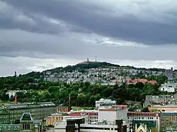 The city lies within the Sidlaw-Ochil anticline, and the predominant bedrock type is Old Red Sandstone of the Arbuthnott-Garvock group.[80] Differential weathering of a series of igneous intrusions has yielded a number of prominent hills in the landscape, most notably the Dundee Law (a late Silurian/early Devonian Mafic rock intrusion) and Balgay hill (a Felsic rock intrusion of similar age).[80] In the east of the city, in Craigie and Broughty Ferry, the bedrock geology is of extrusive rocks, including mafic lava and tuff.[80]