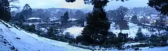 In 1852, Dunedin became the capital of the Otago Province, the whole of New Zealand from the Waitaki south. In 1861, the discovery of gold at Gabriel's Gully, to the south-west, led to a rapid influx of people and saw Dunedin become New Zealand's first city by growth of population in 1865. The new arrivals included many Irish, but also Italians, Lebanese, French, Germans, Jews and Chinese.[30][39] The Dunedin Southern Cemetery was established in 1858, the Dunedin Northern Cemetery in 1872.[40] In the 1860s, Ross Creek Reservoir was created so as to serve Dunedin's need for water.