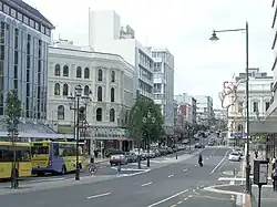 By 1874, Dunedin and its suburbs had become New Zealand's largest city with a population of 29,832 displacing Auckland's 27,840 residents to second place.[43] A major innovation for the city's rapidly expanding economy was the foundation of the Union Company, a shipping line founded by James Mills in Dunedin in 1875, with the backing of Scottish shipbuilder Peter Denny.[44] The line became the largest in the Southern Hemisphere, and by the 1890s dominated shipping along its San Francisco-Auckland-Sydney route.[45] Competition from the American line Matson, Inc. after the annexation of Hawaii threatened Union Company's dominance and forced them to switch the Auckland stop for Wellington-Rarotonga-Papeete.[46]