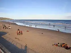 Archaeological evidence shows the first human (Māori) occupation of New Zealand occurred between 1250 and 1300 AD,[4] with the population concentrated along the southeast coast.[25][26][27] A camp site at Kaikai Beach, near Long Beach to the north of the present-day city of Dunedin, has been dated from about that time.[5] There are numerous archaic (moa-hunter) sites in what is now Dunedin, several of them large and permanently occupied, particularly in the 14th century.[25][26] The population contracted but expanded again with the evolution of the Classical Māori culture which saw the building of several pā, fortified settlements, notably Pukekura (at Taiaroa Head), about 1650.[27] There was a settlement in what is now central Dunedin (Ōtepoti), occupied as late as about 1785 but abandoned by 1826.[28][29] There were also Māori settlements at Whareakeake (Murdering Beach), Pūrākaunui, Mapoutahi (Goat Island Peninsula) and Huriawa (Karitane Peninsula) to the north, and at Taieri Mouth and Otokia (Henley) to the south, all inside the present boundaries of Dunedin.
