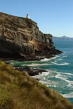 To the east of Dunedin lies the entirety of the Otago Peninsula, a long finger of land that formed the southeastern rim of the Dunedin Volcano.[71] The peninsula is lightly settled, almost entirely along the harbour coast, and much of it is maintained as a natural habitat by the Otago Peninsula Trust. The peninsula contains several fine beaches, and is home to a considerable number of rare species, including yellow-eyed and little penguins, seals, and shags. Taiaroa Head, on the peninsula's northeastern point, is a site of global ecological significance, as it is home to the world's only mainland breeding colony of royal albatross.