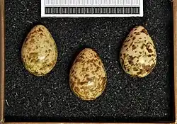 The nest is a shallow scrape on the ground lined with vegetation, into which typically four eggs are laid and incubated by the male and female parents. Chicks are precocial, but are brooded during early development. They start to fly at approximately three weeks of age. The majority of brood care is provided by the male, as the female deserts the brood and often leaves the breeding area.