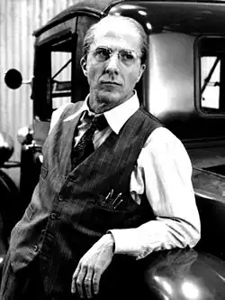 In 1984, Hoffman starred as Willy Loman in the Broadway revival of Arthur Miller's play Death of a Salesman.[75] He reprised his role in a TV movie of the same name, for which he won the 1985 Emmy Award for Outstanding Lead Actor along with a Golden Globe.[76] Hoffman first read the play at the age of 16, but today considers the story much like his own: "It was a blueprint of my family. I was the loser, the flunky, and my brother, a high-school varsity football player, was Biff."[25] Author Marie Brenner notes that Hoffman "has been obsessed with the play" throughout his career: "For years he has wanted to be Willy Loman; when he discovered that Arthur Miller was his neighbor in Connecticut, they began to talk about it in earnest."[77] For Hoffman, the story also left a deep emotional impact from the time he first read it, "I read that play, and I was just destroyed by it. It was like finding out something terrible about my family. I just shook. I felt like my family's privacy had been invaded. I couldn't even talk about it for weeks".[77] Hoffman rehearsed for three weeks with the play's original star, Lee J. Cobb, and remembers seeing his stage performance: "I'll never forget that period in my life. It was so vivid, so intense, watching Lee J. Cobb and his sixteen-inch guns as Willy. God, how I think about what I saw on that stage!"[77] Brenner adds that Hoffman "has been training like a boxer for the role that so exhausted Cobb he had to be replaced after four months."[77] The original play was directed by Elia Kazan, who Hoffman considers "the perfect director, the best there ever was. ... God, I would have done anything to have worked with Kazan."[77]
