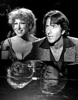 In Tootsie (1982), Hoffman portrays Michael Dorsey, a struggling actor who finds himself dressing up as a woman to land a role on a soap opera. His co-star was Jessica Lange. Tootsie earned ten Academy Award nominations, including Hoffman's fifth nomination. Under direction by Sydney Pollack, Hoffman's role demanded "a steady bombardment of opposites—edgy then funny, romantic then realistic, soft then quivering."[68] To film critic David Denby, Hoffman's character "embodies vulnerability and drive in perfect proportion. He has the knack of making everything he does seem perilous, and so audiences feel protective of him and root for him."[69] Hoffman's acting was made more difficult than necessary, however, as he was not given the rehearsal time Pollack promised, "I like to be very prepared, and I feel that the success or failure of a film is many times determined before you start principal photography. I wanted rehearsal very much. I was promised two weeks and was grieved that I didn't get it. We also followed the risky course of starting to shoot with a screenplay that wasn't completed".[70]