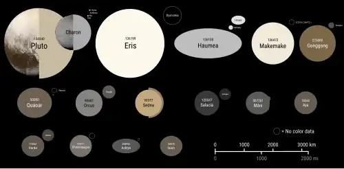1. ^ The hydrostatic equilibrium criterion of a dwarf planet cannot be confirmed unless a spacecraft directly visits the object.