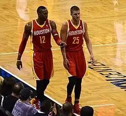 On July 13, 2013, Howard signed with the Houston Rockets on a four-year, $88 million contract, joining James Harden to form a formidable duo.[74] Howard finished the regular season with averages of 18.3 points and 12.2 rebounds and earned All-NBA Second Team honors.[75] During the 2014 playoffs, Howard averaged 26 points and 13.7 rebounds per game, but the Rockets were eliminated by the Portland Trail Blazers in the first round, losing the series 4–2.