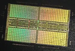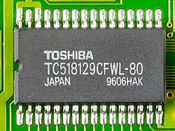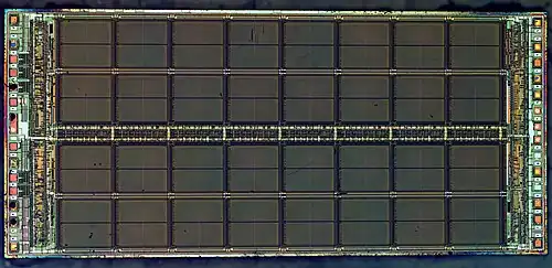 1. ^ "How to "open" microchip and what's inside? : ZeptoBars". 2012-11-15. Archived from the original on 2016-03-14. Retrieved 2016-04-02. Micron MT4C1024 — 1 mebibit (220 bit) dynamic ram. Widely used in 286 and 386-era computers, early 90s. Die size - 8662x3969μm.