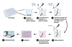 A "sandwich" ELISA is used to detect sample antigen.[20] The steps are: