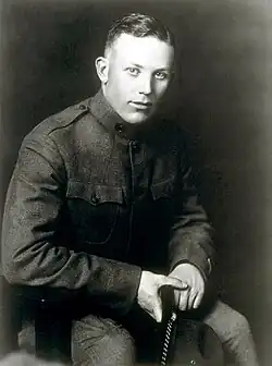 After the United States entered World War I in April 1917, Warren volunteered for an officer training camp, but was rejected due to hemorrhoids. Still hoping to become an officer, Warren underwent a procedure to remove the hemorrhoids, but by the time he fully recovered from the operation the officer training camp had closed. Warren enlisted in the United States Army as a private in August 1917, and was assigned to Company I of the 91st Division's 363rd Infantry Regiment at Camp Lewis, Washington. He was made acting first sergeant of the company before being sent to a three-month officer training course. After he returned to the company in May 1918 as a second lieutenant, the regiment was sent to Camp Lee, Virginia, to train draftees. Warren spent the rest of the war there and was discharged less than a month after Armistice Day, following a promotion to first lieutenant. Warren remained in the United States Army Reserve until 1934, rising to the rank of captain.[7]